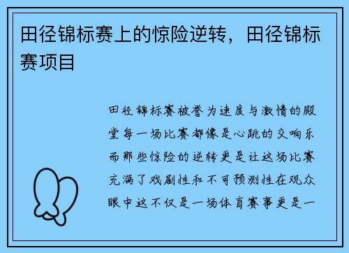 田径锦标赛的赛场上,逆转不仅仅是一个个惊人的数字,更是一种精神的象征。每一次逆转都像是命运的转折点,让观众看到了体育竞技的魅力与人性的光辉。