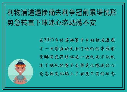 利物浦遭遇惨痛失利争冠前景堪忧形势急转直下球迷心态动荡不安